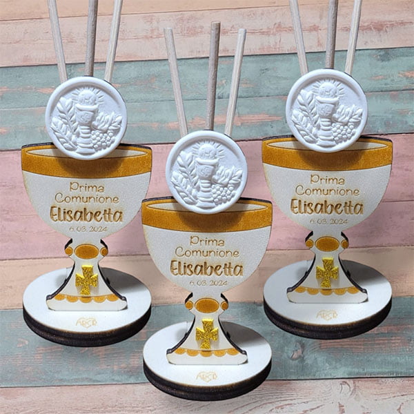 E’ possibile scegliere di aggiungere la sola scatola oppure la confezione completa come bomboniera. La scatola viene realizzata sempre a mano e su misura per l‘oggetto in questione.