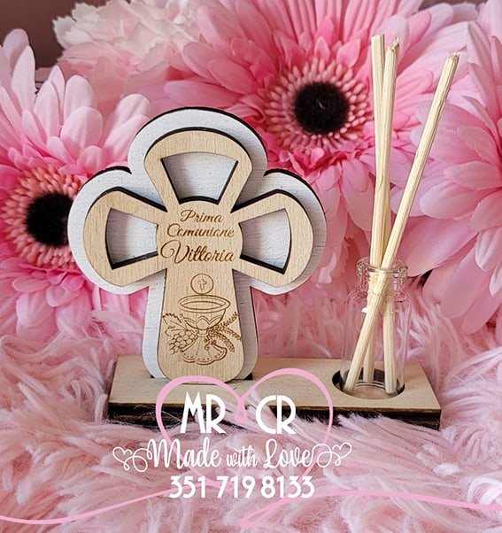 Viene spedita “smontata” : sarà sufficiente incastrare la croce nella fessura e appoggiare la boccetta nell’apposito spazio.